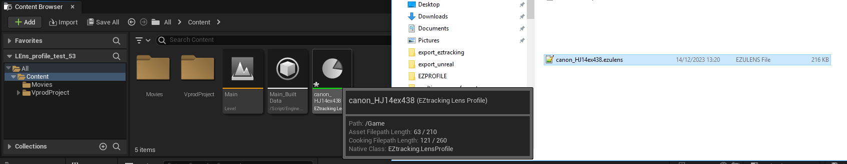 Check the "Use Lens Profile" box and drag-and-drop the EZtracking Lens asset from the content browser to the socket just under: