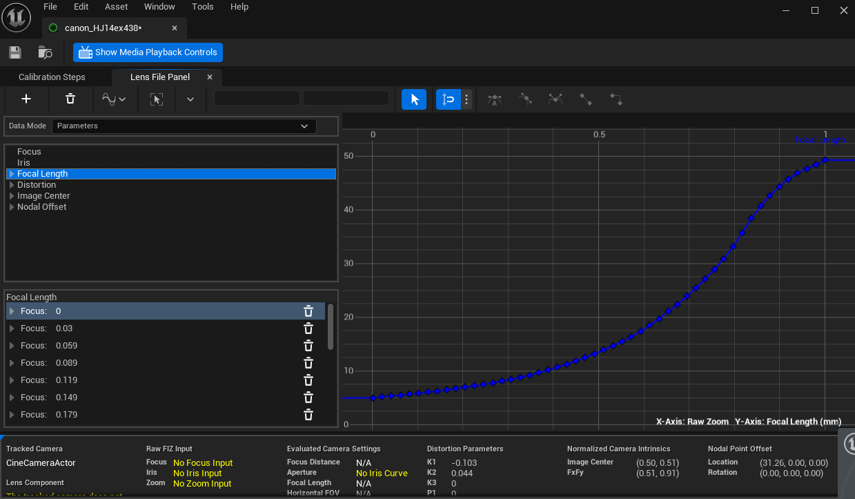 If you double-click on the lens uasset, this window will appear with all the curves already filled in: