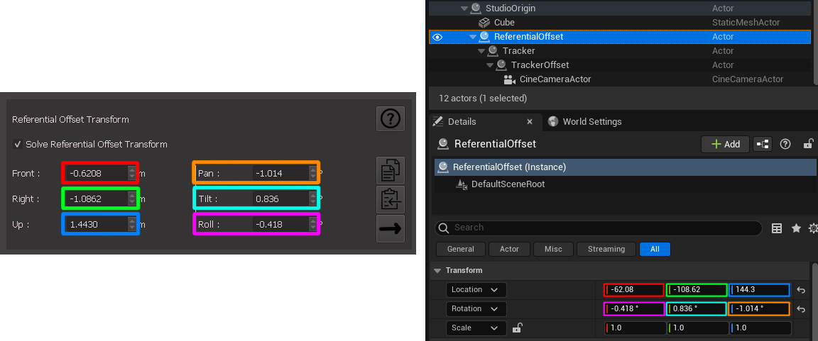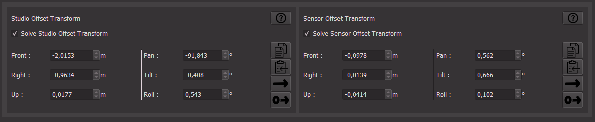 The most straightforward way to export the offsets if there is no existing integration between CalibFX-Lineup and the tracking system or render engine is to copy-paste the values manually, selecting the right axes to represent the front, right and up directions.