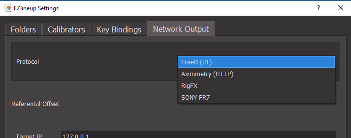 The current target is selected and configured in the Tools → Settings → Network Output tab: