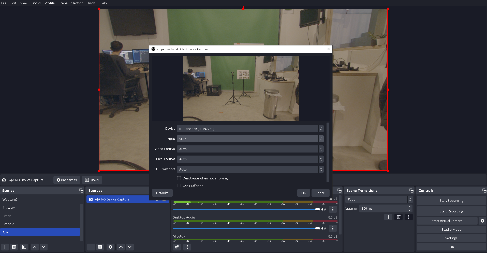Now OBS sends video on the virtual camera driver.