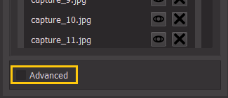 In Advanced mode, the reprojection error for each picture is displayed next to the picture name: