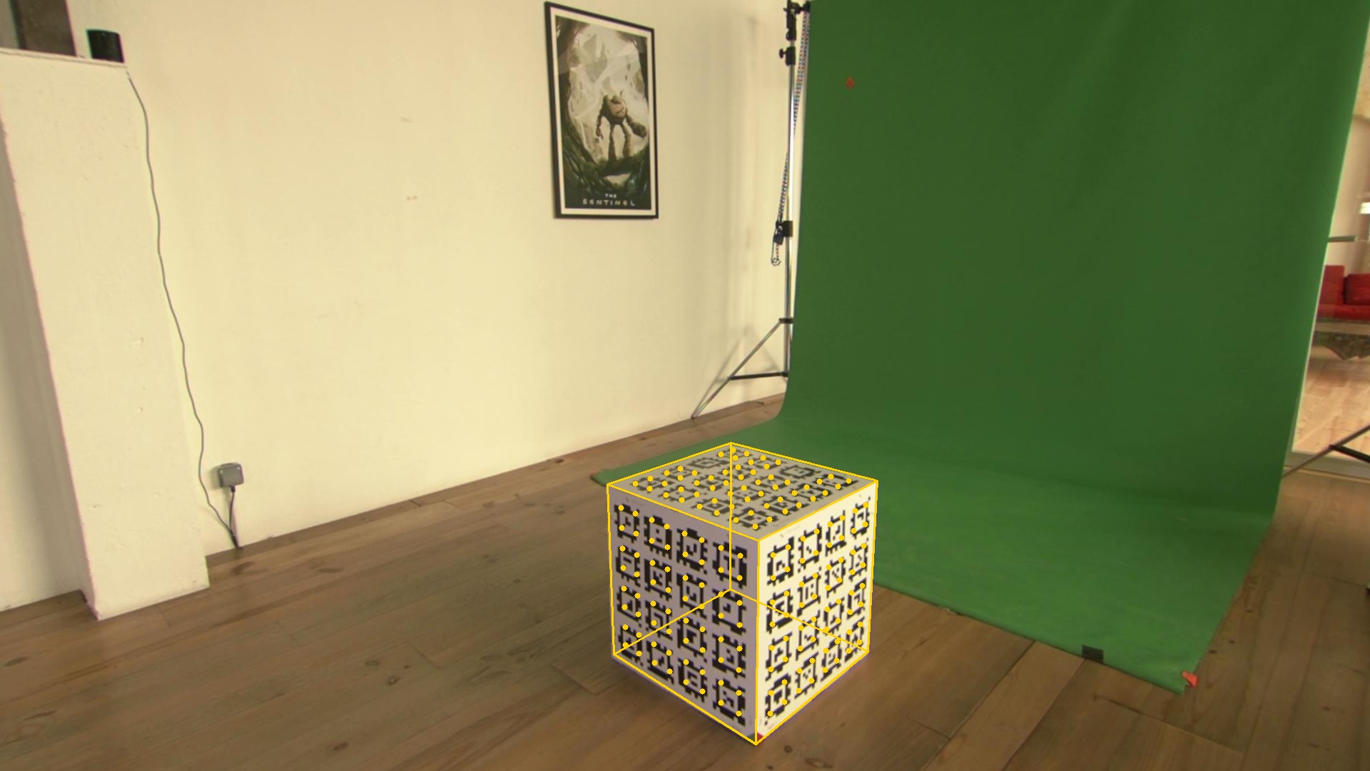 EZlineup will try to reproject the cube using the tracking data and the offsets computed for each picture. The "Display Calibration Result" section allows you to scroll through the pictures looking at the reprojection: