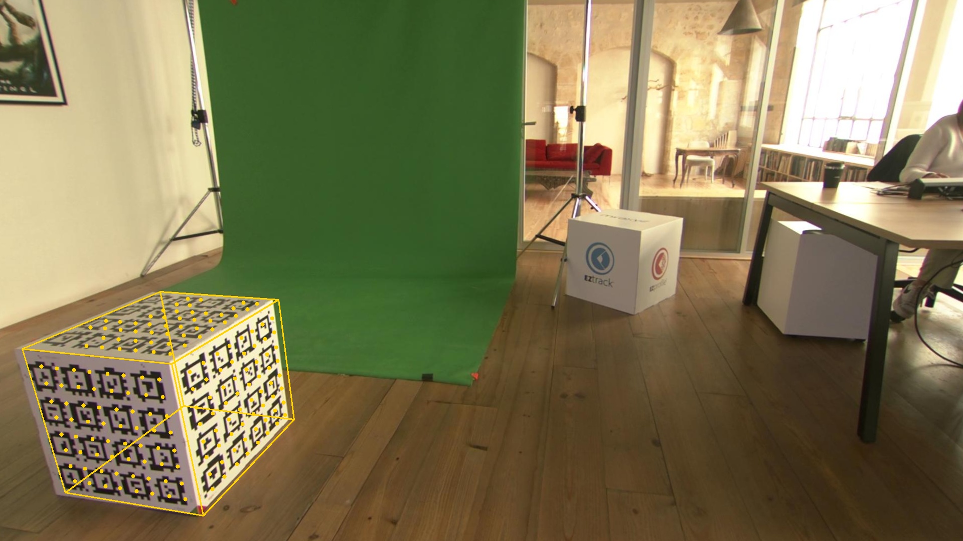 EZlineup fails to reproject the perspective of the virtual cube on the real cube. Looking at the Visual Pose Estimation, we see that even before introducting the tracking data, the reprojection fails.
